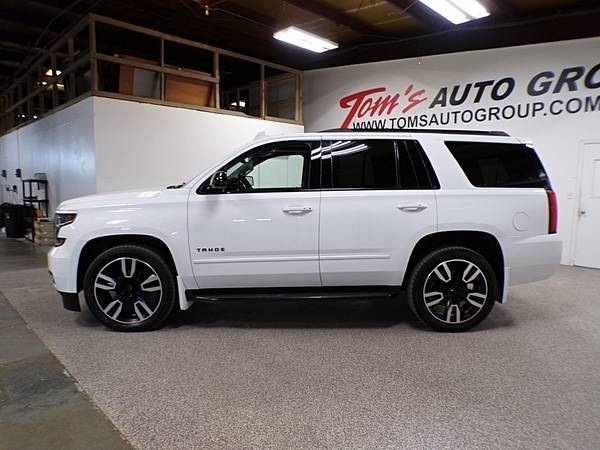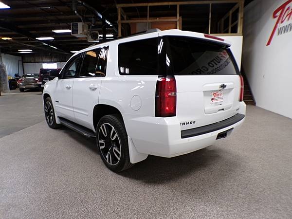 2018 CHEVY TAHOE PREMIER 4WD WITH HEATED AND VENTED LEATHER SEATS, HEATED STEERING WHEEL, MOON ROOF, REVERSE CAMERA, REMOTE START, DVD, TOW/HAUL, TOUCH SCREEN DISPLAY, BLUETOOTH, AM/FM, CRUISE, TILT, FRESH DETAIL AND READY TO GO!