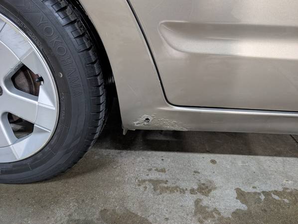 Exterior: The exterior of this car is in overall good condition. There are some minor cosmetic imperfections here and there. There is som clear coat peel on the rear spoiler. There is rust present on the rear of the rocker panels. A picture is included in the ad.
