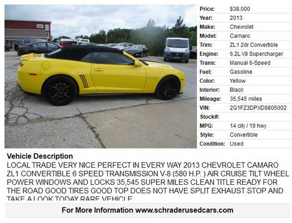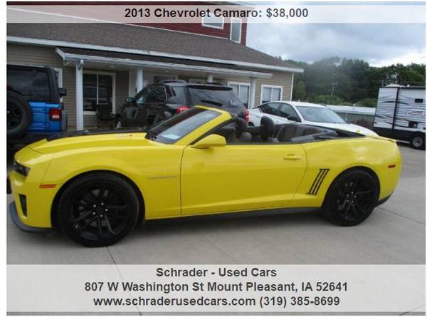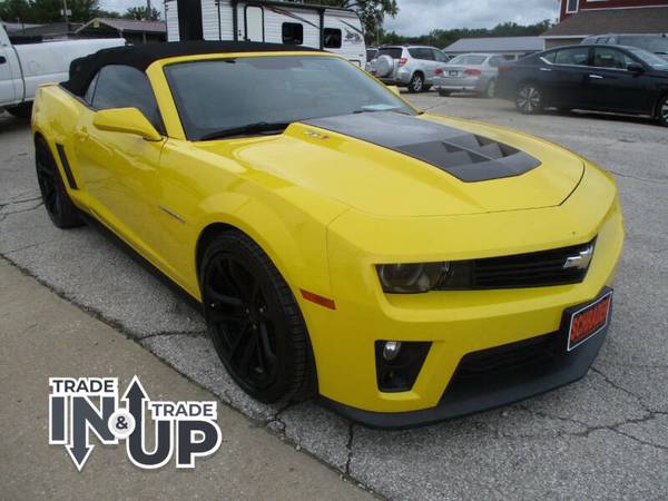 LOCAL TRADE VERY NICE PERFECT IN EVERY WAY 2013 CHEVROLET CAMARO ZL1 CONVERTIBLE 6 SPEED TRANSMISSION V-8 (580 H.P. ) AIR CRUISE TILT WHEEL POWER WINDOWS AND LOCKS 35,545 SUPER MILES CLEAN TITLE READY FOR THE ROAD GOOD TIRES GOOD TOP SPORT AND TOUR MODE STOP AND TAKE A LOOK TODAY RARE VEHICLE
