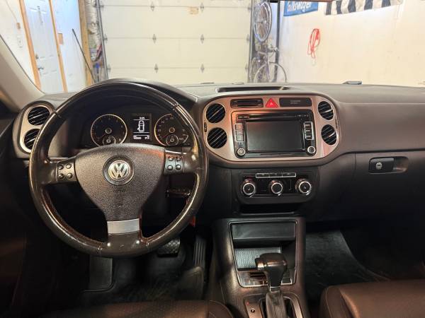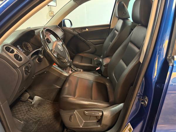 This is a Gorgeous VW Tiguan Wolfsburg Edition 4 Motion (AWD) SUV in Very Nice Condition. Its an Automatic. It's an Automatic. It has AC, Great Heat, Tilt Wheel, Cruise Control, Power Windows, Power Locks, Power Seat, Panoramic Sunroof, Premium Stereo (w/bluetooth) Roof Rack, Lower Driving Lights, Alloy Wheels with Like New 235/65/17 Goodyear Reliant Touring Tires and More. This VW has a Smooth and Fuel Efficient 2.0T Engine with Great Performance and MPG. The Color is a Beautiful Sapphire Blue Metallic with a Deluxe Black Leather (Never Smoked in) Interior in Excellent Condition.This SUV Runs and Drives Excellent. All Equipment working as it Should and in Great Condition. All Books and 2 Keys Included. Please Contact me Here. (515) 238-4407 Thank You