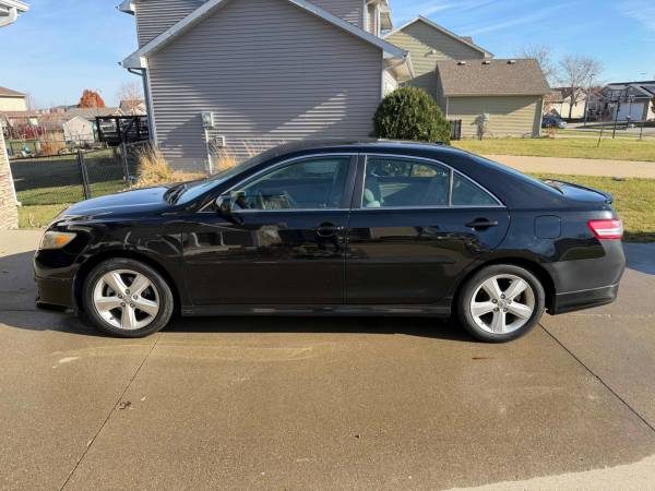 2011 Toyota Camry SE Sedan 4D in good condition with a Rebuilt title. Black with gray interior; 165,000 miles. 4-cylinder 2.5-liter engine and 6-speed automatic transmission with overdrive, front-wheel drive. VIN: 4T1BF3EK5BU709081