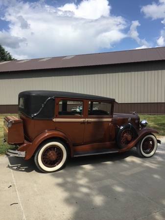 1928 F-28 sedan phaeton 4 door suicide landau dual front fender spares. Ground up professional restoration with interior untouched. Travel suitcase in the continental position.