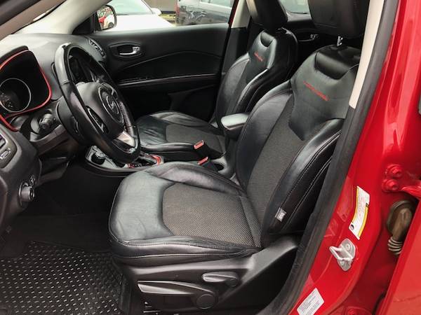 Very Clean, Well kept, non smokers 2018 Jeep Compass Trail Rated Trailhawk 4x4 here. Fully Loaded plus 2.4 4 Cylinder, Automatic Transmission, Shift On the Fly Multi-Stage 4x4, Heated Leather Seating, Big Screen Stereo Radio with Back-Up Camera, Aps, Bluetooth, Aux input and more, Catch-All Style Jeep Floor Mats, Dual Climate Control, Cruise, Good miles, Sharp Color combination and more make this the one to have. Still looks Great.