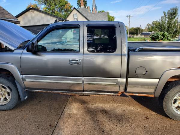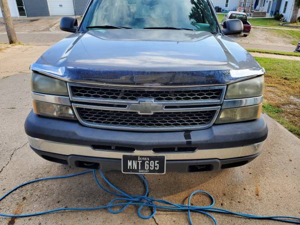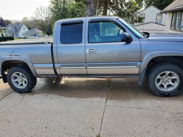 06 silverado 1500 4x4 ext cab body has 206k but motor has 157,xxx and transmission was rebuilt 1.5 years ago runs and drives good every thing works, no check engine lights does have typical chevy rust. frame is solid. Inside is really clean besides saggy head liner aftermarket stereo. Has 3 inch leveling kit. Just put some better tires on it.and just put all new skyjacker shocks on it.other wise good reliable truck .selling cause family member has a newer truck I want so this one needs to go .books for $6200.so want $5000 CASH. No trades won't reply to emails serious inquiries call or text me thanks for looking.