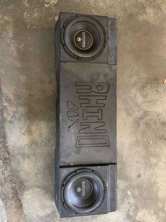 Rhino under seat sub box taken out of a 2005 Silverado. Should fit 99-07 and probably other years. It has 2 euphoria 10” subs installed. Amp is an Anarchy AC2000.2 new in box never been...
