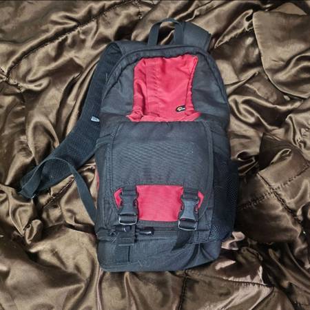 The Lowepro Fastpack 100 Padded Camera Backpack Bag in red & black is a versatile and durable option for photographers on the go. With its universal compatibility and padded design, this backpack is designed to safely and securely hold a camera while also offering accessory compartments for extra storage. Made of water-resistant nylon, this backpack ensures your gear stays protected in various weather conditions. The sleek black color and Lowepro branding add a stylish touch to this practical and functional camera backpack.