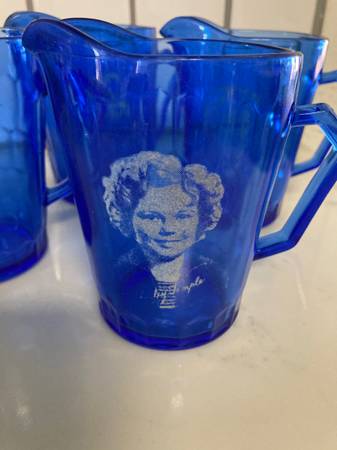 I have 4 of these cute Shirley Temple glass pitchers!! $15 each or all for $50 cash only