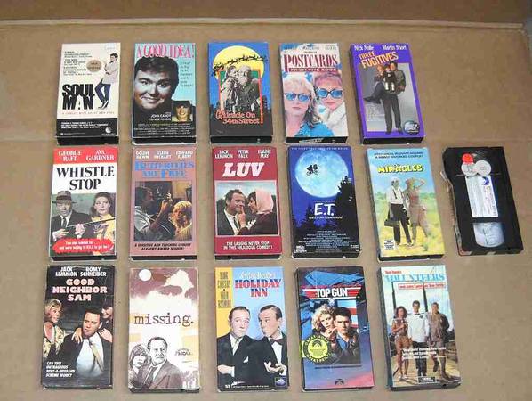 I have for sale a group of 16 Movies on VHS tape. They include actors such as Jack Lemmon, Ava Gardner, John Candy, Tom Cruise, and more. I was told they all worked properly when I got them. They have now been in storage for 10 to 15 years. Some of the cases may need a mild cleaning from being in storage, but most appear to be in good condition. This lot also includes 2 of the super durable VHS hard cases used by video rental stores.