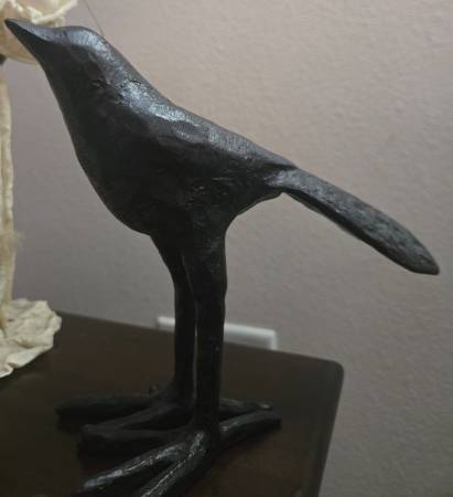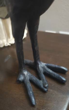 Pottery Barn cast iron crow. Does have 2 imperfections but is priced accordingly. One toe is missing and if you look really close the tail has a small Crack. Neither of these flaws are noticeable and I have considerably dropped the price because I do have to be honest. Don't miss out, very unique home decor.