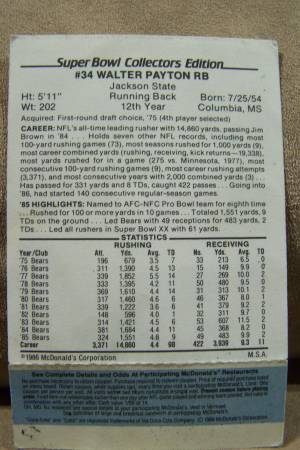 1 walter payton mcdonalds scratch off football card