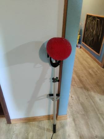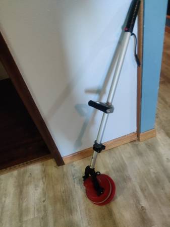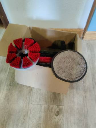 8 in floor scrubber with tons of pads runs on battery backpack with charger 300.00 works good on stair steps or behind toilet or on carpet.works well retiring don't use anymore.new they are 750.00