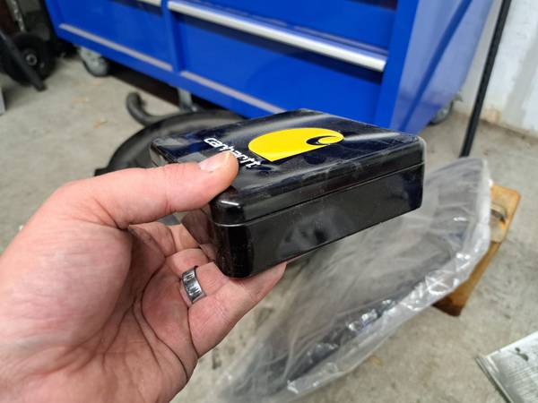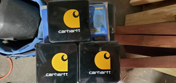 Empty carhartt tins that held wallets. Can use them to put gifts in. 3 for $5 Located in Perry, go to Boone/Grimes areas weekly.