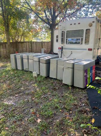Commercial recycling fiberglass bins with four internal removal tall bins - $40 (Urbandale)
