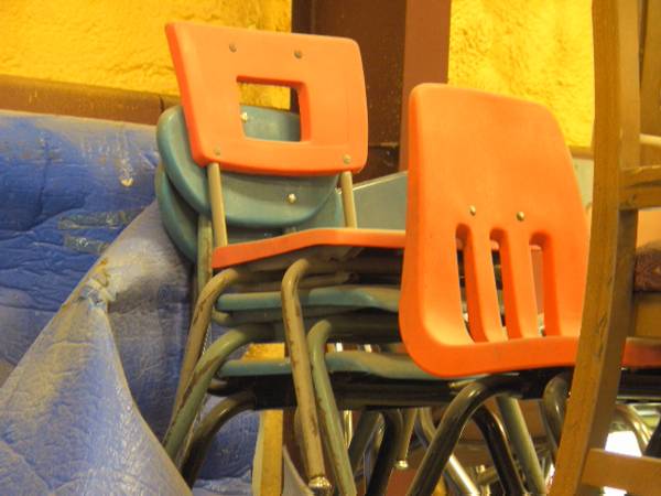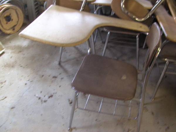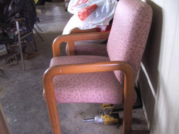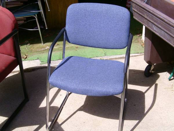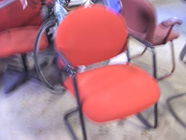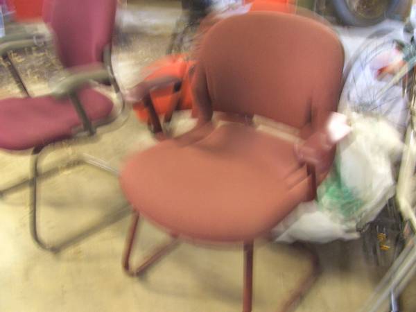 White Steel Case Vintage Chairs in pic 1--$5 cash each-4 available--Each has a tear in the vinyl seat