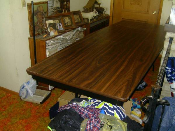 Conference Table--Folding legs--as new--8 ft long, 35.5" @ center tapering to 31/25" @ each end-$100