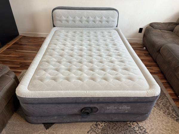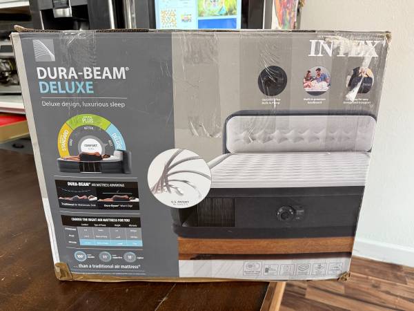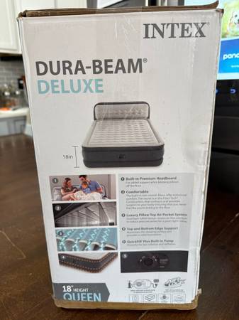 Intex Dura-Beam Deluxe Ultra Plush Headboard Queen Air Mattress with Built-in Pump.