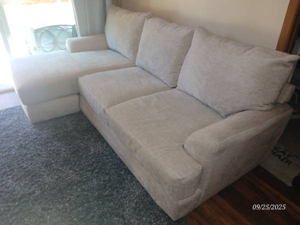 Moore Furniture Nash Reversible Sofa with Chaise Color: Tidal Sand Purchased from Nebraska Furniture Mart. Overall Dimensions: 101.5"L x 62"W x 38.5"H Weight: 130lbs (Located near Valley High School)