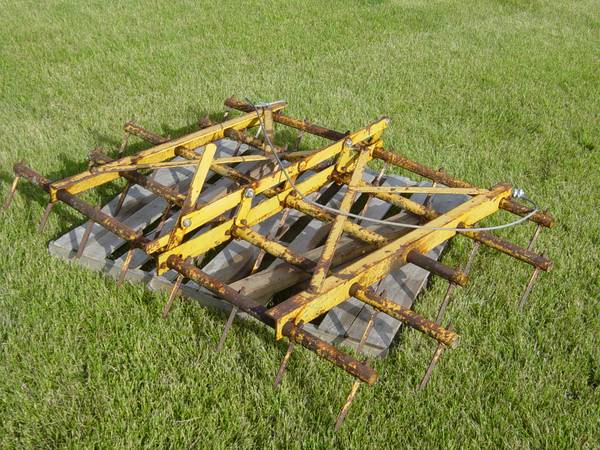 Harrow section to pull with garden tractor or 4 wheeler with pull chain or cable.