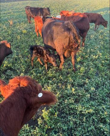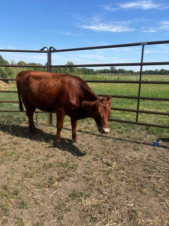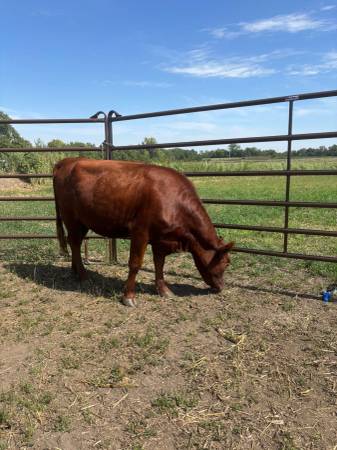 Heavy bred - Due by the end of December. Heifer Calf from this year at her side but weaned and not yet registered (her name is Ellie).