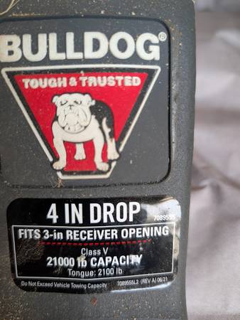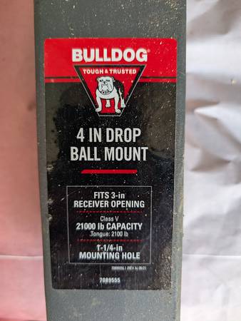Bulldog Heavy Duty Trailer Hitch Ball Mount, Fits 3 In. Receiver, 4 In. Drop. This is a new hitch never used. Class V 21,000# capacity. . Delivery available. Price is $125.00 cash. Located near Osceola, Iowa 50213. Please call F!VE 0ne F!VE - F0UR N!NE 0ne - 3 S!X 3O. No text. No email.