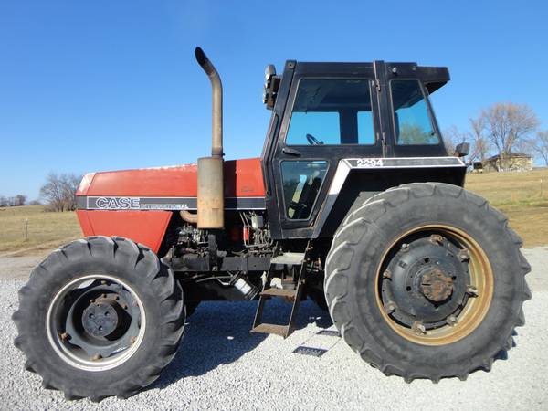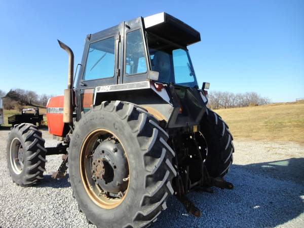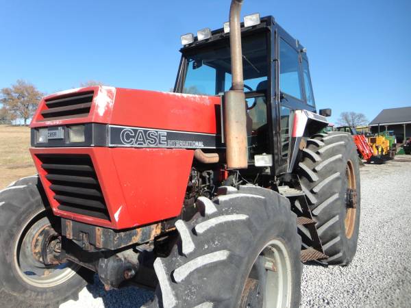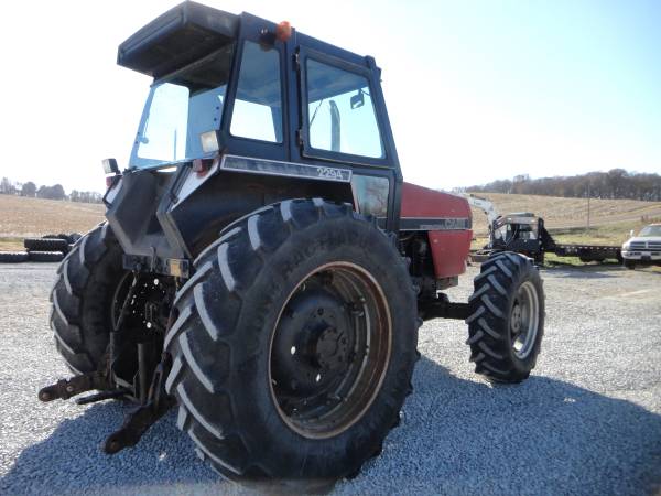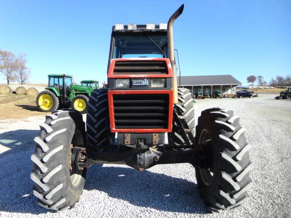 1987 CaseIH 2294 MFWD cab tractor. Starts and runs good. Smokes a little when cold. Has 6 cylinder turbocharged diesel engine. Rated at 154 horsepower. Showing 6,325 hours. Has 12 speed partial powershift transmission. Shifts good. Park works but linkage is worn. 4wd works. Has differential lock, 3 point hitch, 540/1000pto, 3 hydraulic remotes and block heater. Cab is in good condition. Has A/C(updated r134a), heat, radio and air ride seat. Rear tires 18.4x38 at 60% slightly weathered. Front tires 14.9x28 at 80%. $19,500 more tractors at bunsetractorinc.com