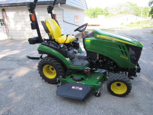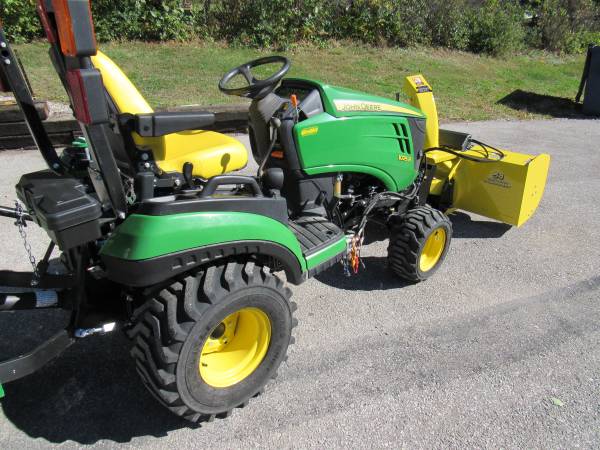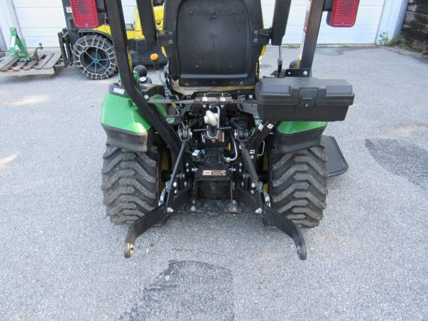 Low hour JD 1025 with only 363 hours, 4x4 with two range hydro trans, diff lock, P.S, mid and rear PTO, cat one three point, has hydraulic lift for the deck off the joy stick, not the three point, making it a lot easier two use three point attachments with the mower on, folding ROPS. Tractor comes with a drive over 60" deck and like new 54" two stage snow blower. Price is $18,200 if you also want the new Land Pride Reverse Tine Tiller show with the tractor. I also have several attachments for sale two buyer of the tractor. New front blade, used 52" front broom, 3pt weight box, 5' 3pt blade or box scraper. Call if you want a package price with some of the items listed. Click on MORE ADDS BY THIS USER to see other equipment I have for sale.