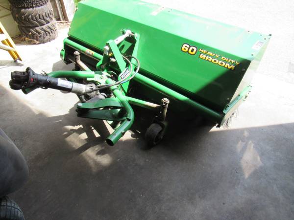 JD 60" broom for the 1400-1500 front mowers, is in good condition. It is on a mower so you can see it work. I have a fork to load. May take a front blade in good condition for the same mowers on...