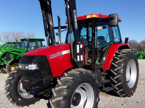 2004 CaseIH MXM130 tractor, 4wd, only 3076 hours, 130 horsepower 6 cylinder turbo diesel, 18 speed powershift transmission w/ LH power shuttle, 3 point hitch, 2 rear hydraulic remotes, 540 & 1000 pto, cab, air, heat, stereo, air seat, new paint, brand new tires, rear 18.4x38, front 14.9x28. Comes with a Bush Hog 6045 loader with joystick, mid valve and 7' skid steer quick attach bucket. Pre-Emissions. Very nice tractor, excellent condition. $58,500. Trades welcome. Financing and delivery available. Lots of tractors and equipment at bnttractor.com