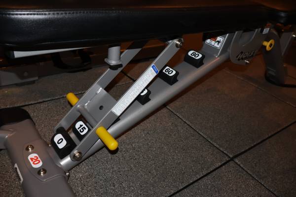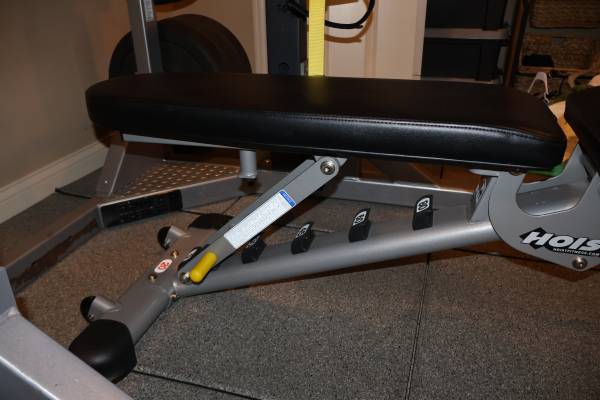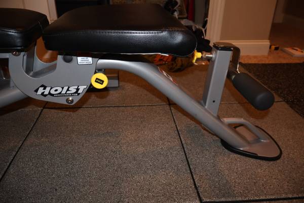 Hoist incline bench with wheels in like new condition. Measures 66"L x 2'W x 47"H. 0,15, 30, 45, 60 and 80 degree incline.