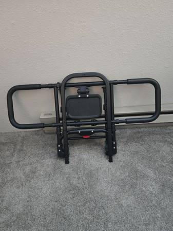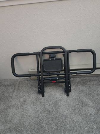Elder bed rail has a light and a shelf and folds down, easy to use. Black. Don't fall out of bed again. Easy to use.