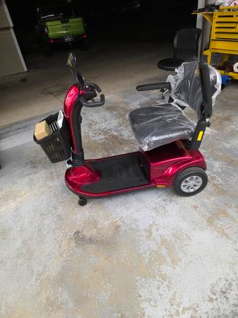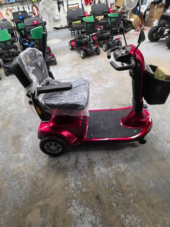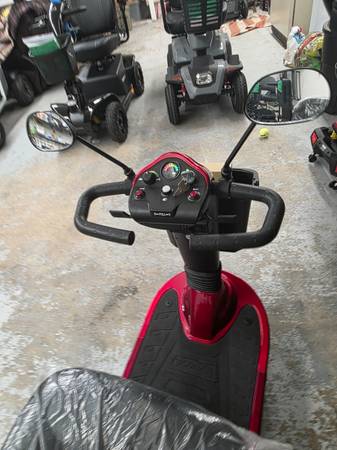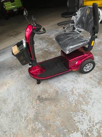 New never used 400 pound wieght rating headlight taillight horn basket swivel seat moves back n fourth also mirrors adjustable speed dial adjustable tiller handle bar manual charger anti tip wheels front n rear new 12v 35amp batteries because it was in storage $2800 new price is $1200 cash Txt 5157834zero1zero