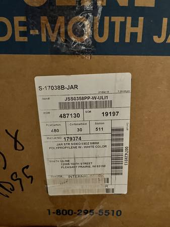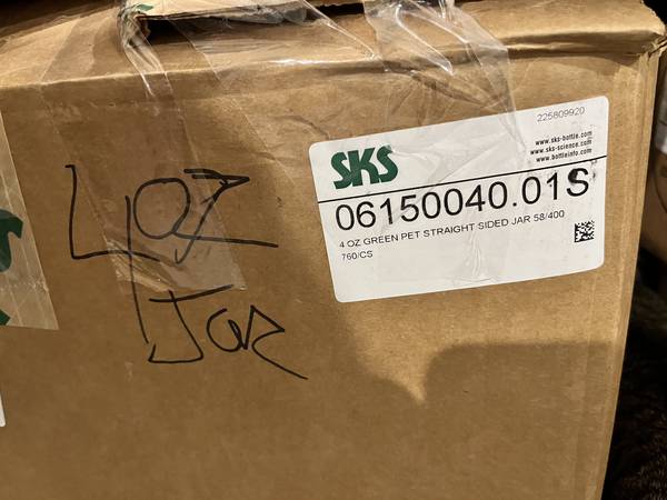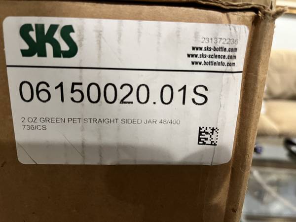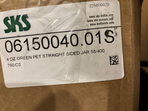 2oz - 3oz - 4oz - 8oz jars w/ caps New in cases Cap -48 MM J PPRO DA Black Domed PP Lined caps - 8400 pcs Cap- 58MM JPPRO DA Black Smooth top and side PP lined caps - 5000 pcs 8oz. Green PET...