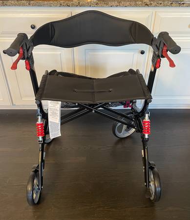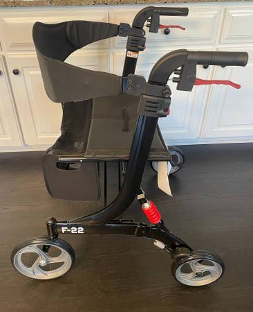 Brand new rollator Walker (never used) 28"L x 28.25" W Weighs 20.5 lbs Will hold up to 450 lbs.