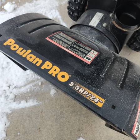 I have a Poulan Pro 24 inch cut 6 HP Engine- 2 Stage Snowblower - Electric Start –that is in Excellent condition. This blower has been completely checked over – This is a excellent snow blower, I did put gas in this and started it up and blew snow with it, checked it over to make sure that everything worked as it should. It works perfectly and I will guarantee it. Extremely nice blower. This is easy to handle snow blower with a very strong engine. Tuned and ready - fresh oil