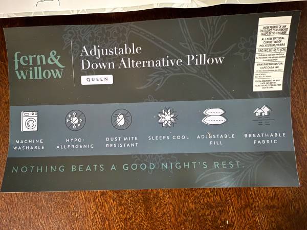 Experience ultimate comfort with 's adjustable, breathable, machine washable pillows. These white pillows are perfect for a restful night's sleep. Queen size. New in Box set of 2