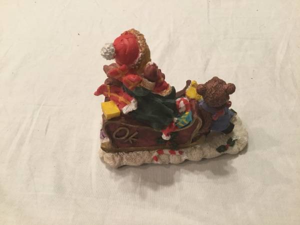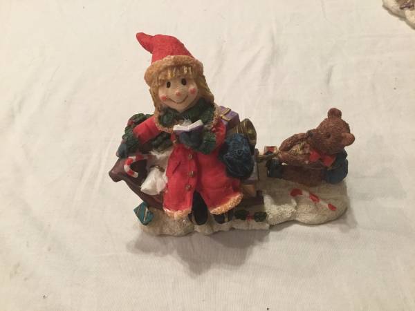 2 Christmas decor figures, girls with bears on sleighs. No chips or cracks. Very good condition. If posted, available