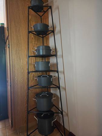 Chefs®7-Tier Cookware Stand, Triangle Shelf Storage Tower for Kitchen, Pans Pots Storage Rack. Pans in photo available for sale in seperate listing.