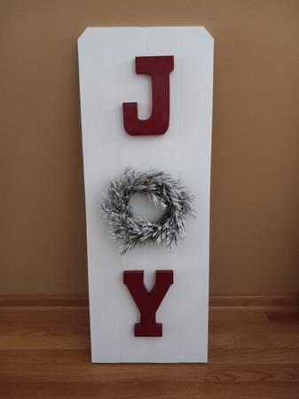 36" tall, 12" wide, wreath and letters approx. 10" long $25
