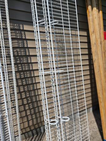 6 pcs. 12 ft. x 20 in. close mesh. These pcs. were mounted on a concrete wall so the had to cut a notch in each one to accommodate electrical conduit running the wall.($25 EA.)