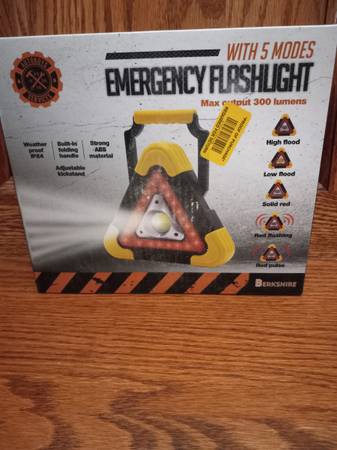 Strong ABS plastic construction, 5 Modes: High Flood, Low Flood, Solid RED, Red Flashing, and Red Pulse. Rotates 180 degrees, Ureses 3 AA Battery, Built-in Folding handle, and Adjustable Kickstand....