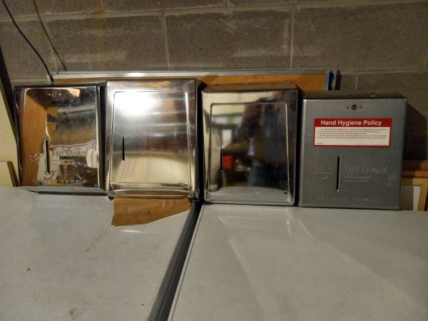 4-Paper towel dispensers. $8 EA. or 4 for $20 Dimensions: -Dispenses 400 C-fold or 525 multifold towels measuring 3.13'' to 3.81'' deep (sold separately).-Dimensions: 10.75'' H x 4'' W x 14'' D....