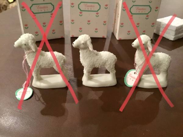 Department 56 1991 Easter lamb #7392-8 from the Snowbabies Annual Animal Collection (first edition). 2.5” tall. Hand-painted bisque porcelain. Includes complete box. Never displayed. No chips or cracks, minor wear to box. From smoke, pet and bedbug home.