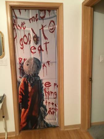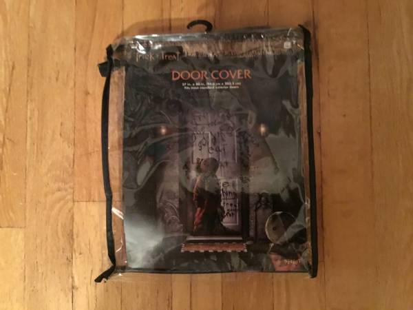 “Sam” from the Trick r Treat movie door cover by Sprit Halloween. Demanding something good to eat. Measures 37” x 80. 95% polyester and 15% spandex. Excellent condition.