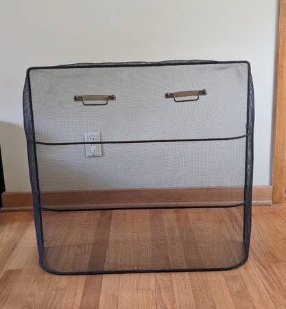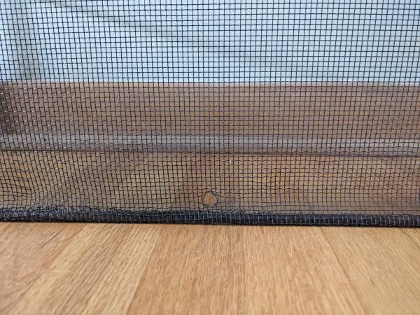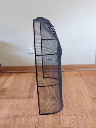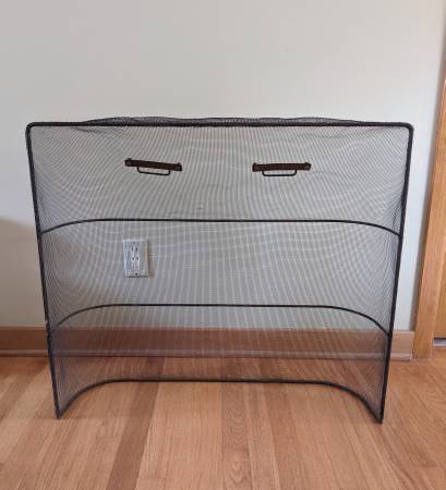 This is a vintage/antique black steel frame and mesh fireplace screen. There is one small place where the mesh has been stretched at the bottom; it is, otherwise, in excellent condition. Please view the photographs for documentation.