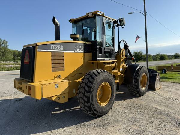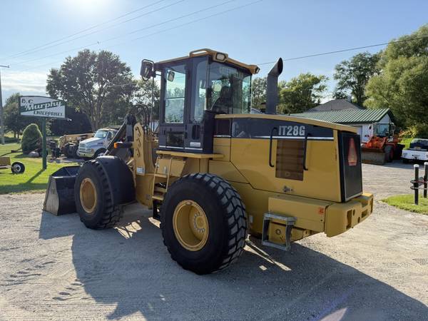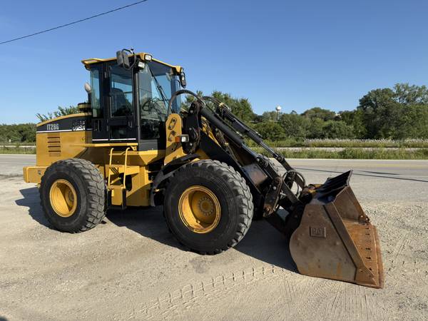 2001 Caterpillar IT28G Wheel Loader, Cat style "I.T." Hydraulic coupler, Front Aux hyd lines, Comes with Forks, Cat jib Boom, and Bucket, unit has 10,000 hours, has cab with heat and air, Cat 3116T 125 hp diesel engine, all pin are tight, good matching tires (some weathering but lots of life left), machine weight is 28,000 lbs, unit is 100% with no rust, clean inside and out, ready to go to work, unit works great!!!! $45,900 call Brandon 712-254-1301 sales tax does apply unless buyer is exempt Thanks