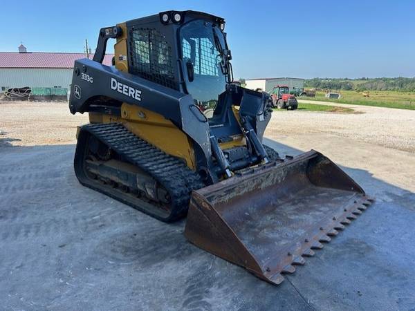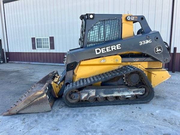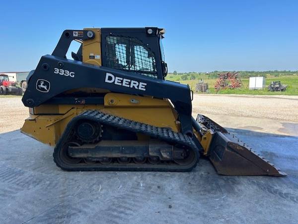 2020 Deere 333G skid steer - standard flow auxiliary hydraulics, 1880 hours, fully enclosed cab with air/heat/radio, backup camera, power quick attach, 2 speed, cold start package, air ride heated cloth seat. Good tracks. 1 owner machine. Recently serviced by dealer. Very nice machine inside and out. All original. Rated at 100 HP, weighs 12,100 lbs, rated operating capacity of 5285 lbs at 50% of tipping load.