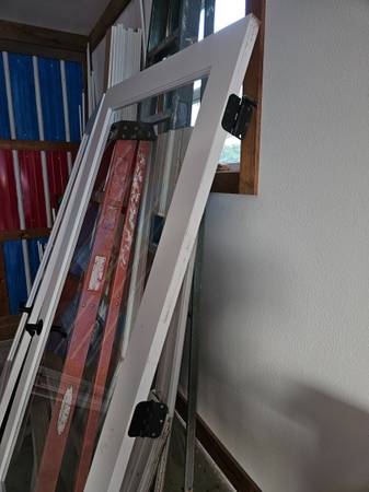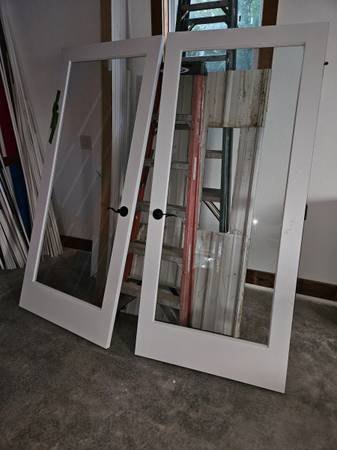 Was a French door, but can be used separately. Two 36 inch x 80 inches with black hinges and dummy handles $100.00 for both or $75.00 each