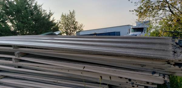 Used 3 'x19' ribbed steel siding. 29 guage. $15.00 per sheet. We have approximately 600 sheets available. Each 3'x19' sheet weighs approximately 50 pounds.