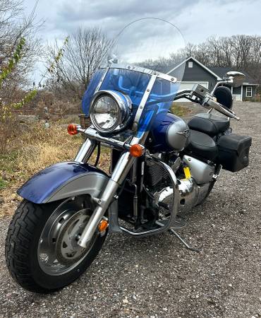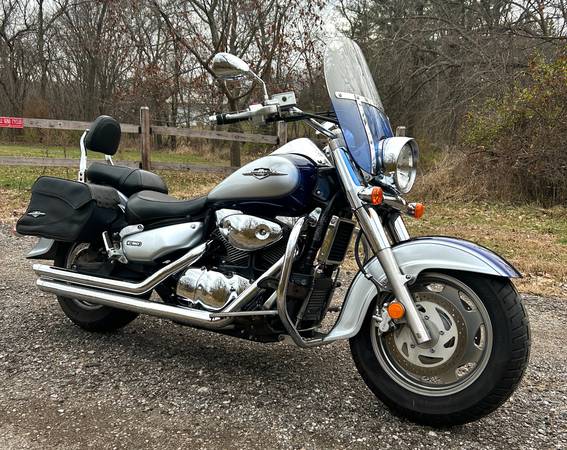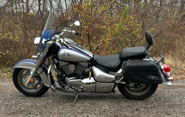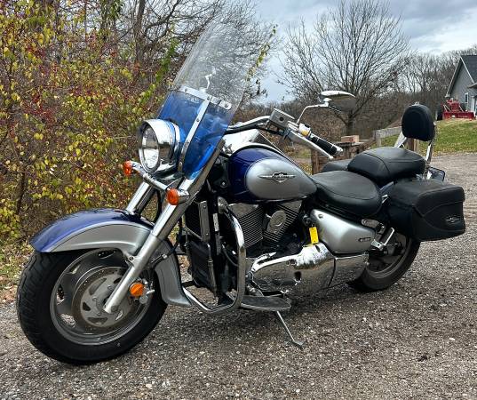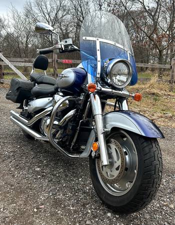 This Boulevard C90 has Suzuki's fuel injected 1475 cc v twin air and oil cooled engine. The engine provides plenty of passing power and super smooth, reliable highway riding. The motorcycle handles amazing and feels very light for its size. Suzuki did an excellent job designing the C90's low center of gravity coupled with a fuel tank that rests under the rider to accomplish this. The motorcycle comes with everything pictured and is fully set up for a long ride. Cobra exhaust, crash bars, windscreen, saddle bags, and passenger seat. This ride has good tires, and runs great! You will enjoy the smooth, low maintenance shaft drive on the long trips and the power/sound this machine delivers.
