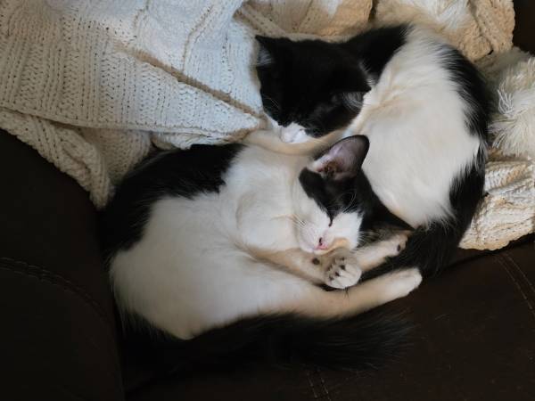 We have two kittens available for a small rehoming fee, $10. Both are in great health, have not been to a Vet, one male, one female. Both are blsck/white.